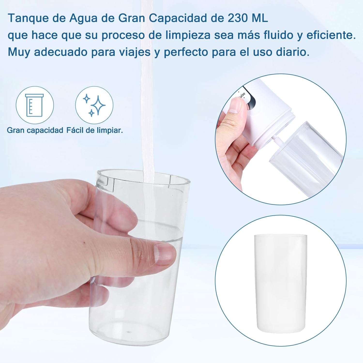 • [Tanque de Agua Extraíble de 240 ML]: Raspador irrigador oral mejorado viene con un tanque de agua de 240 ml para usar hilo dental sin interrupciones sin necesidad de recargas múltiples. Al mismo tiempo, el tanque de agua es extraíble, lo que le permite limpiar a fondo el interior de la cal.