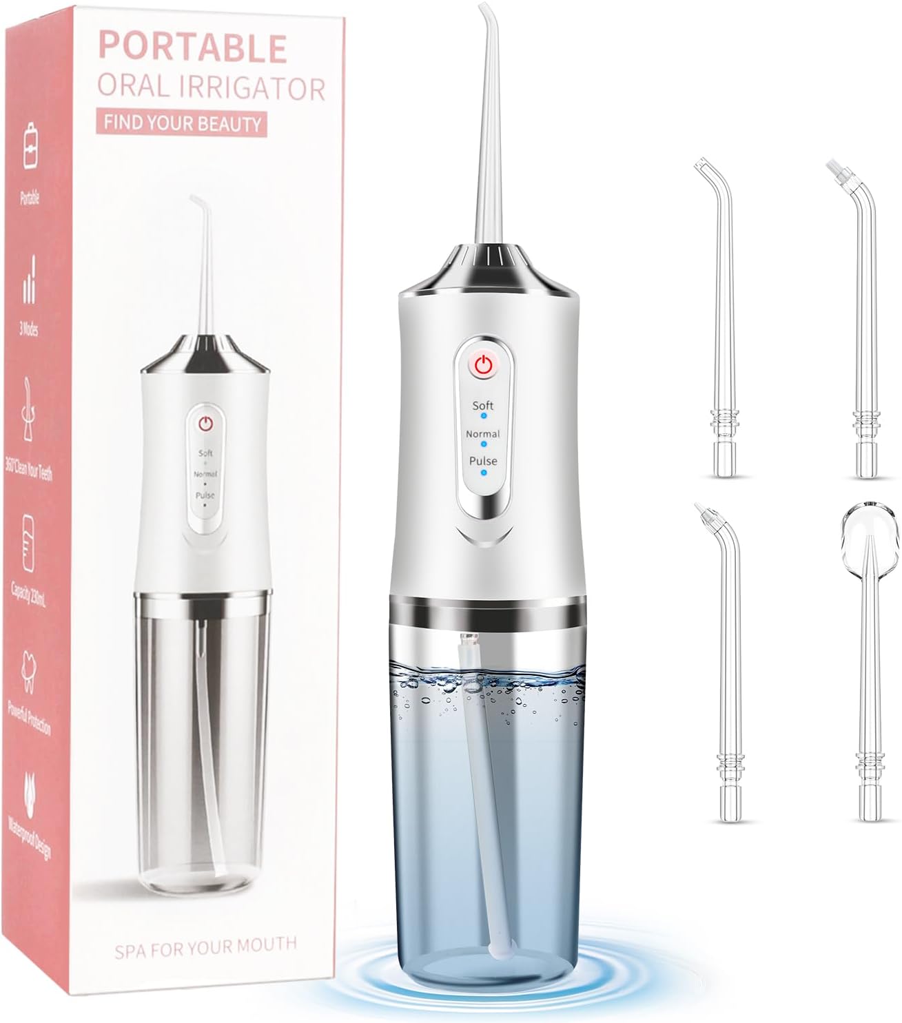 • Resistente al Agua y A Prueba de Fugas ]:limpiador dental inalámbrico está especialmente diseñado con doble protección impermeable IPX7 por dentro y por fuera, Limpiador de dientes diseño a prueba de agua IPX7 facilita el uso del irrigador bucal en la ducha del baño.El depósito de agua removible completamente abierto le permite limpiar a fondo la cal y la placa para fácil limpieza del interior del hilo dental.