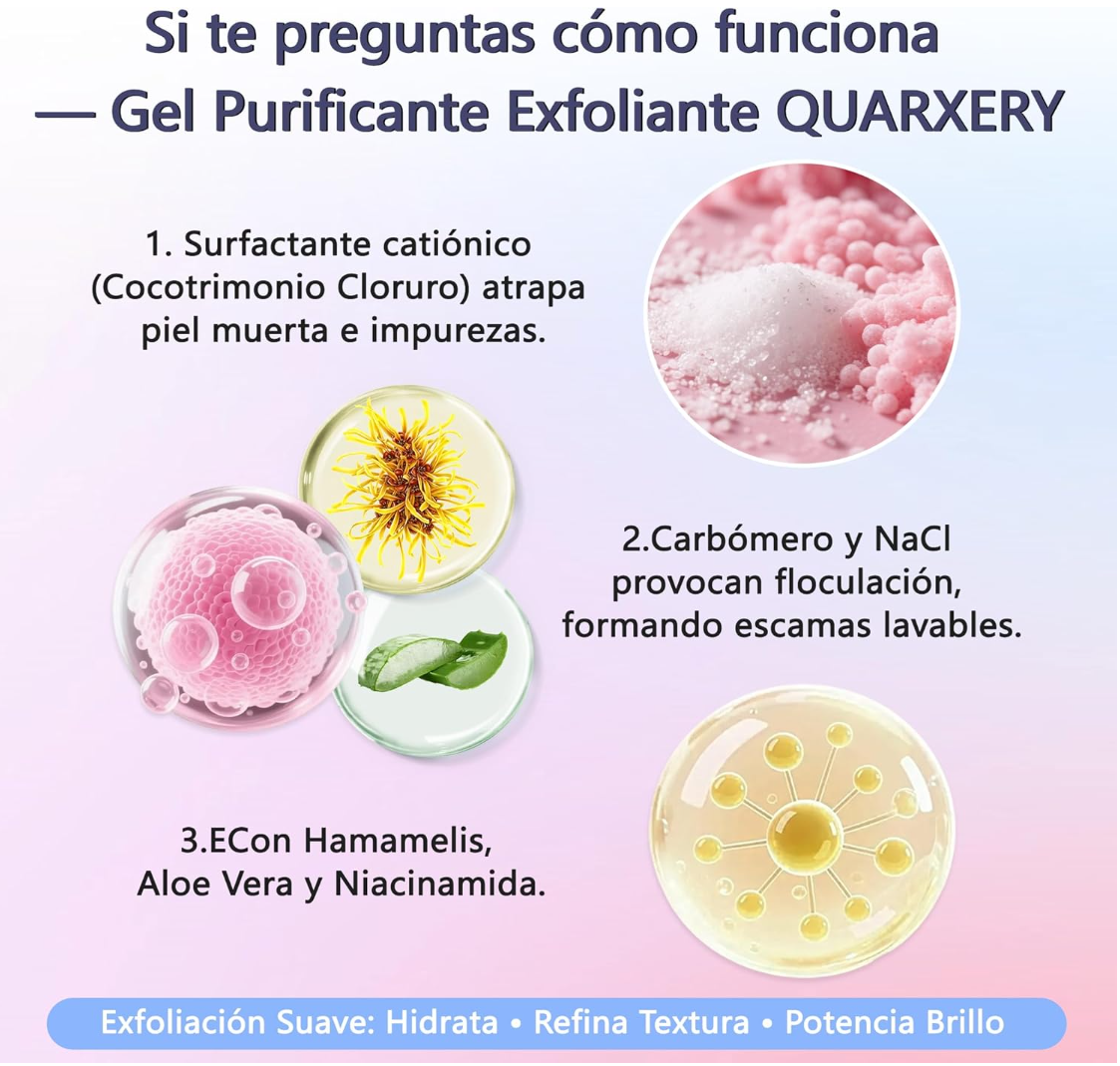 Limpiador facial profundo y exfoliante facial premium: Nuestro gel exfoliante facial QUARXERY combina la potencia del nicotinamida con una fórmula purificante profunda, ideal como gel limpiador facial para piel grasa, seca y mixta. Es el esencial de skin care y belleza que no puede faltar en tu rutina diaria.