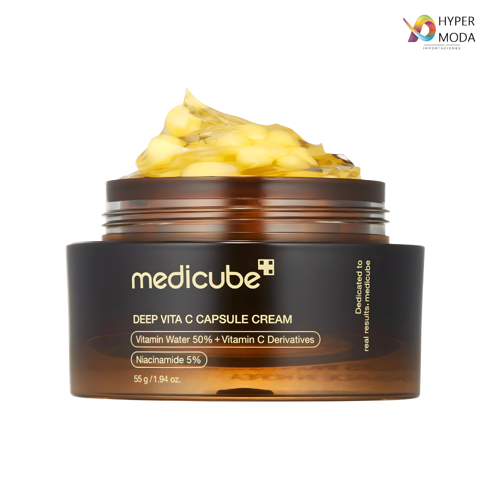 Revitalice su brillo con la CREMA EN CÁPSULAS DEEP VITA C de Medicube, una fórmula respaldada por la ciencia que contiene un 50% de vitamina agua con vitamina, derivados estables de la vitamina C y un 5% de niacinamida.