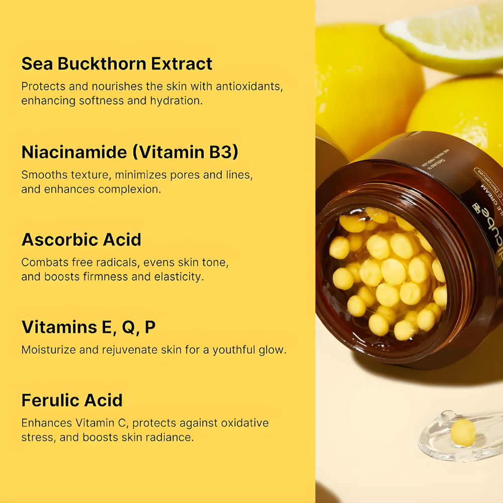 La niacinamida refina la textura, atenúa las manchas oscuras y refuerza la barrera cutánea. Envuelta en cápsulas de color amarillo intenso, la crema se funde perfectamente en la piel y deja un acabado ligero. Diseñada para todo tipo de piel (incluida la sensible), su fórmula sin perfume y probada dermatológicamente actúa día y noche para combatir el tono desigual, la sequedad y los signos tempranos del envejecimiento.