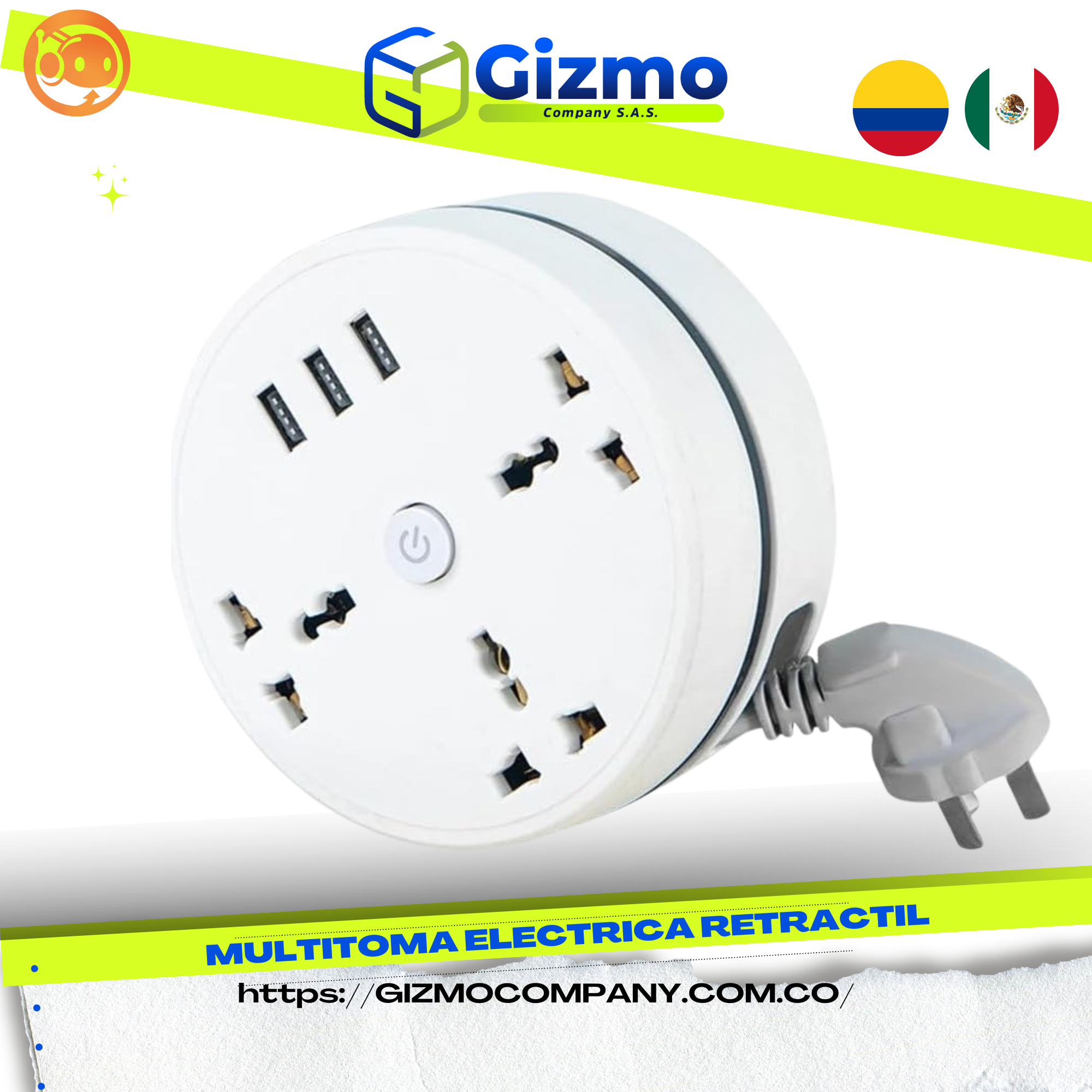 La Regleta Retráctil 6 En 1 Con USB es la solución perfecta para cargar múltiples dispositivos en casa, oficina o viajes. Su diseño compacto y redondo integra 3 tomas de CA, 2 puertos USB-C y 1 puerto USB-A, permitiendo conectar hasta 6 dispositivos al mismo tiempo de manera segura y organizada.