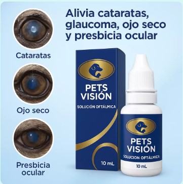 Respuesta: *Pets Vision* contiene ingredientes naturales que cuidan y regeneran la salud ocular de tu mascota: